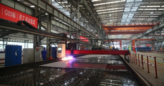 ????齒鋸轟鳴,火焰飛濺。近日,武船集團(tuán)承接的深圳至中山跨江通道鋼箱梁制造項(xiàng)目正式點(diǎn)火開工。