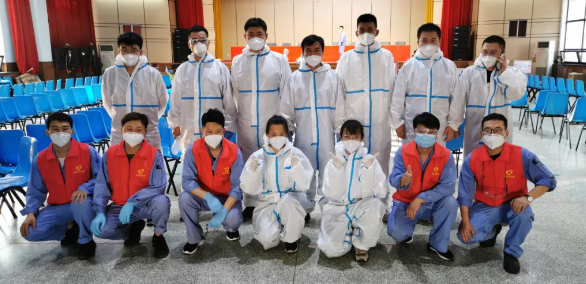 大船集團(tuán)團(tuán)委組建由團(tuán)委書記帶頭的26名大船青年志愿者,為核酸檢測工作保駕護(hù)航。