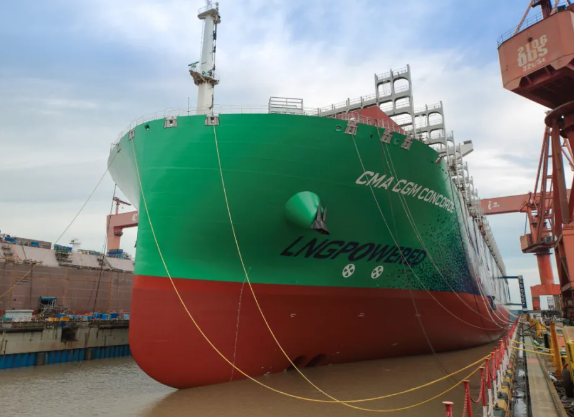 23000箱液化天然氣動力集裝箱船2號船緩緩駛離碼頭,按期開始常規(guī)試航。相比首制船,2號船試航完整性更好,碼頭周期進一步縮短。