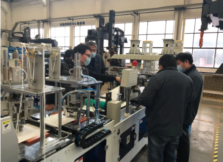 作為生產(chǎn)供貨單位,為了以最快速度擴(kuò)大產(chǎn)能,八院鵬力科技集團(tuán)黨支部組織成立“黨員突擊隊(duì)”,24小時(shí)無(wú)間歇輪班工作,帶頭加班加點(diǎn)投入專項(xiàng)任務(wù)研制生產(chǎn)。八院鵬力科技集團(tuán)僅用11天就完成N95口罩機(jī)、平面口罩機(jī)和壓條機(jī)樣機(jī)研制,僅15天就實(shí)現(xiàn)了量產(chǎn)設(shè)備的連續(xù)供貨??蒲袌F(tuán)隊(duì)正確處理抓質(zhì)量、促進(jìn)度的關(guān)系,按照軍工產(chǎn)品質(zhì)量要求,確保交付產(chǎn)品質(zhì)量過(guò)硬。
