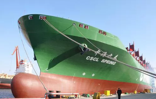 2014年1月8日,我國完全自主研發(fā)、自行設計、自行建造的第一艘10000TEU超大型集裝箱船“中海之春”號在大船集團交付?!爸泻V骸碧柕慕桓?,不僅實現(xiàn)了國內(nèi)建造超大型集裝箱船又一次新的飛躍,而且使我國成為繼韓國、日本之后,能夠自主研發(fā)、自主設計、自主建造同型超大型集裝箱船的國家。