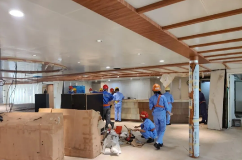 這是廣船國際阿爾及利亞豪華客滾輪內(nèi)裝收尾現(xiàn)場。