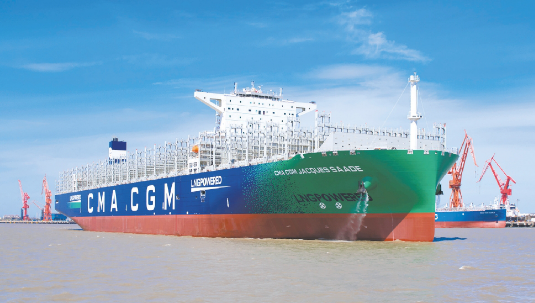 ——2020年9月,自主建造交付世界上首艘以LNG 為主要動力的噸位最大、集成世界最先進技術、環(huán)保性能最優(yōu)的23000TEU雙燃料動力集裝箱船“達飛雅克·薩德”號,并實現(xiàn)批量交付,進一步鞏固了滬東中華在超大型集裝箱船建造領域的行業(yè)領軍地位。這艘被譽為海上“綠巨人”的雙燃料動力集裝箱船,備受業(yè)界廣泛關注,她的成功建成交付是我國船舶工業(yè)高質(zhì)量發(fā)展取得的重要成果,彰顯了滬東中華雄厚的建造實力,也標志著中國船舶集團在世界大型集裝箱船領域成功實現(xiàn)從跟隨到引領。