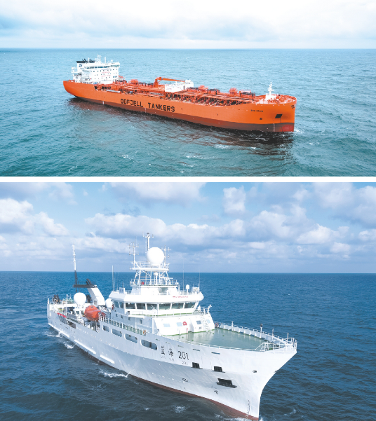 ——成功建造多型世界首創(chuàng)性產(chǎn)品。其中包括全球最大的G4 型45000 噸集裝箱滾裝船、世界化學品船的旗艦船型38000噸和49000噸雙相不銹鋼化學品船。49000噸雙相不銹鋼化學品首船曾被歐洲媒體評為“2019年度化學品船”大獎,使滬東中華成為世界頂級化學品船建造基地。