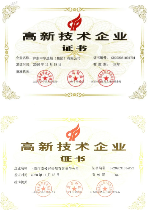 日前,中國船舶集團(tuán)旗下滬東中華及其控股公司上海江南長興造船有限責(zé)任公司雙雙收到了由上海市科學(xué)技術(shù)委員會、上海市財政局、國家稅務(wù)總局上海市稅務(wù)局聯(lián)合頒發(fā)的高新技術(shù)企業(yè)證書。