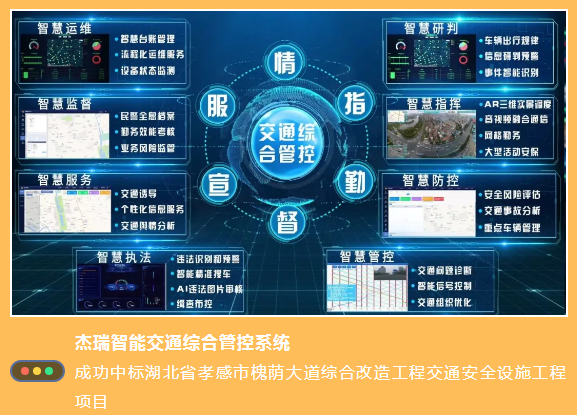 中國(guó)船舶集團(tuán)旗下七一六所 研發(fā)的杰瑞智能交通綜合管控系統(tǒng)、智能交通信號(hào)控制系統(tǒng)和杰瑞信息系統(tǒng) 受到業(yè)主青睞!