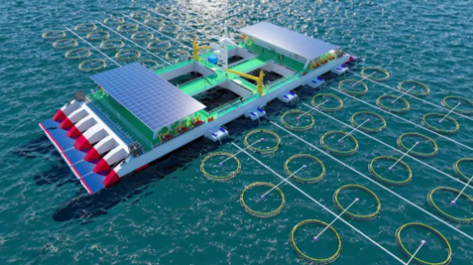 80米半潛式深遠海智能養(yǎng)殖旅游平臺效果圖