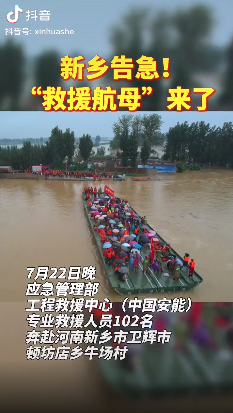 7月24日1時(shí)許,進(jìn)占道路具備重型裝備通行條件,石料也已準(zhǔn)備到位,決口封堵戰(zhàn)正式打響。在封堵現(xiàn)場(chǎng),前一天在新鄉(xiāng)轉(zhuǎn)移被困群眾時(shí)立下頭功、被稱作“救援航母”的應(yīng)急動(dòng)力舟橋再次出現(xiàn)。