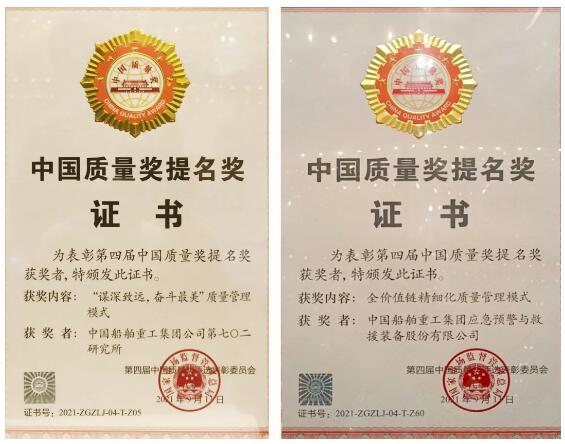 9月16日,在中國(guó)質(zhì)量(杭州)大會(huì)上,第四屆中國(guó)質(zhì)量獎(jiǎng)評(píng)選結(jié)果揭曉,中國(guó)船舶集團(tuán)旗下七〇二所、中船應(yīng)急分別以“謀深致遠(yuǎn),奮斗最美”質(zhì)量管理模式、全價(jià)值鏈精細(xì)化質(zhì)量管理模式,榮獲第四屆中國(guó)質(zhì)量獎(jiǎng)提名獎(jiǎng)。