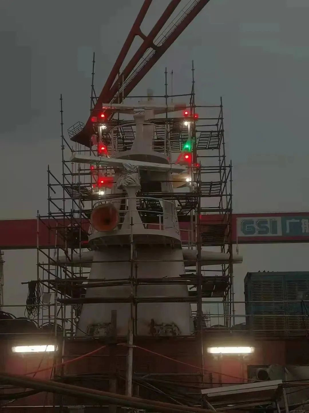 該船實(shí)現(xiàn)了出塢前上建亮燈。電纜拉放完成率87.8%,作為全球最大的豪華客滾船,該船全船電纜長度達(dá)到了946公里(相當(dāng)于從廣州到重慶);出塢前已完成了830公里電纜的拉放工作。涂裝完整性實(shí)現(xiàn)突破,該船出塢時(shí)上層建筑上方仍有部分區(qū)域未完成涂裝? 這是因?yàn)樵摯怪备叨纫呀咏?0米,超過了船塢高空車的最大極限。