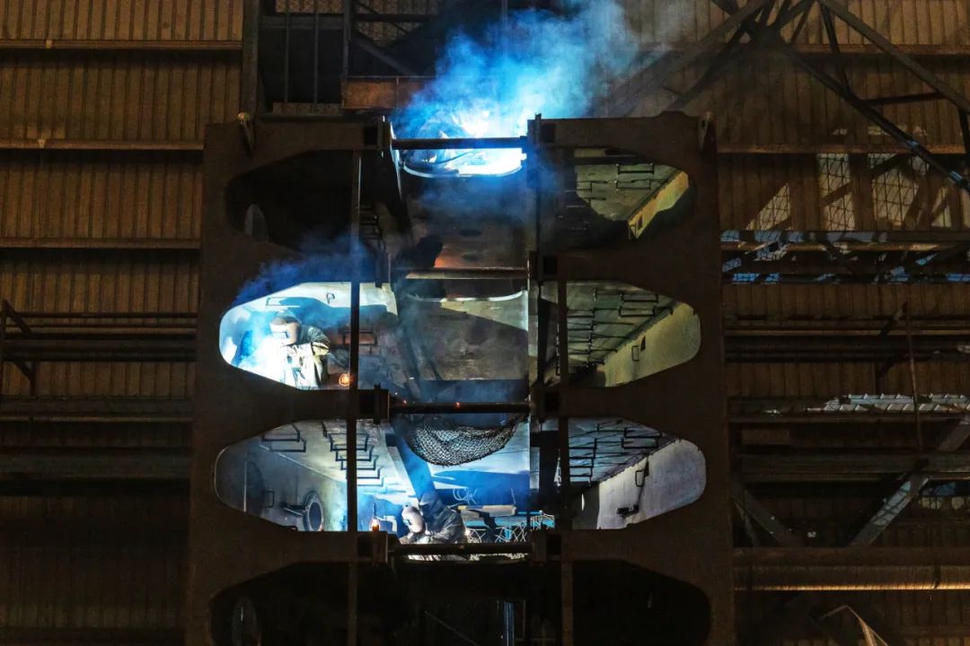 大船集團(tuán)全體干部職工統(tǒng)一思想,凝心聚力,堅守本職擔(dān)當(dāng),積極主動作為,爭分奪秒,奮力沖刺。其中FPSO-8項(xiàng)目是大船集團(tuán)建造的第七艘FPSO。今年以來,F(xiàn)PSO-8項(xiàng)目提前計劃節(jié)點(diǎn),順利實(shí)現(xiàn)鋪底,并完成了連續(xù)六個總段的塢內(nèi)合攏。