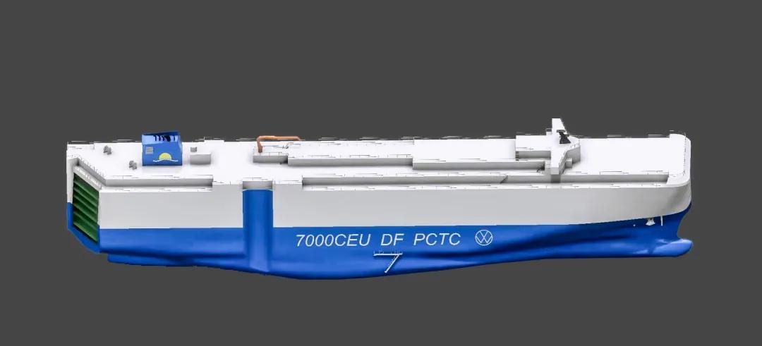 該型船可裝載7000輛汽車,采用先進(jìn)的天然氣(LNG)/燃油雙燃料推進(jìn)系統(tǒng)設(shè)計(jì),可在3種燃料模式下航行,續(xù)航力最高可達(dá)15,000海里。配置了高壓岸電系統(tǒng),采取了減阻防污漆等各類節(jié)能措施,EEDI(能效營運(yùn)指標(biāo))滿足國際海事組織最新的第二階段(phaseⅡ)要求,是一艘節(jié)能環(huán)保高效的汽車運(yùn)輸船。