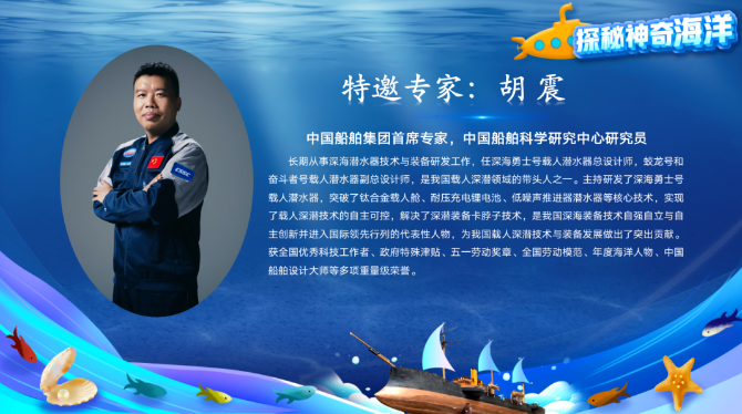 3月22日,由山東省大中小學海洋文化教育研究指導中心、中國海洋大學等單位聯(lián)合主辦的“探秘神奇海洋”云端科普活動的重點板塊之一——“深海探索”直播正式開播。中國船舶集團首席專家、中國船舶集團七〇二所研究員胡震在直播間為廣大觀眾答疑解惑,近6萬名觀眾觀看直播并提出了各類關于深海的問題。