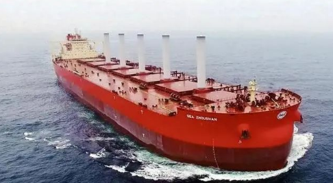 該船甲板上安裝4臺轉筒帆作為船舶輔助推進動力裝置,也是全球首艘安裝風動節(jié)能裝置的散貨船。