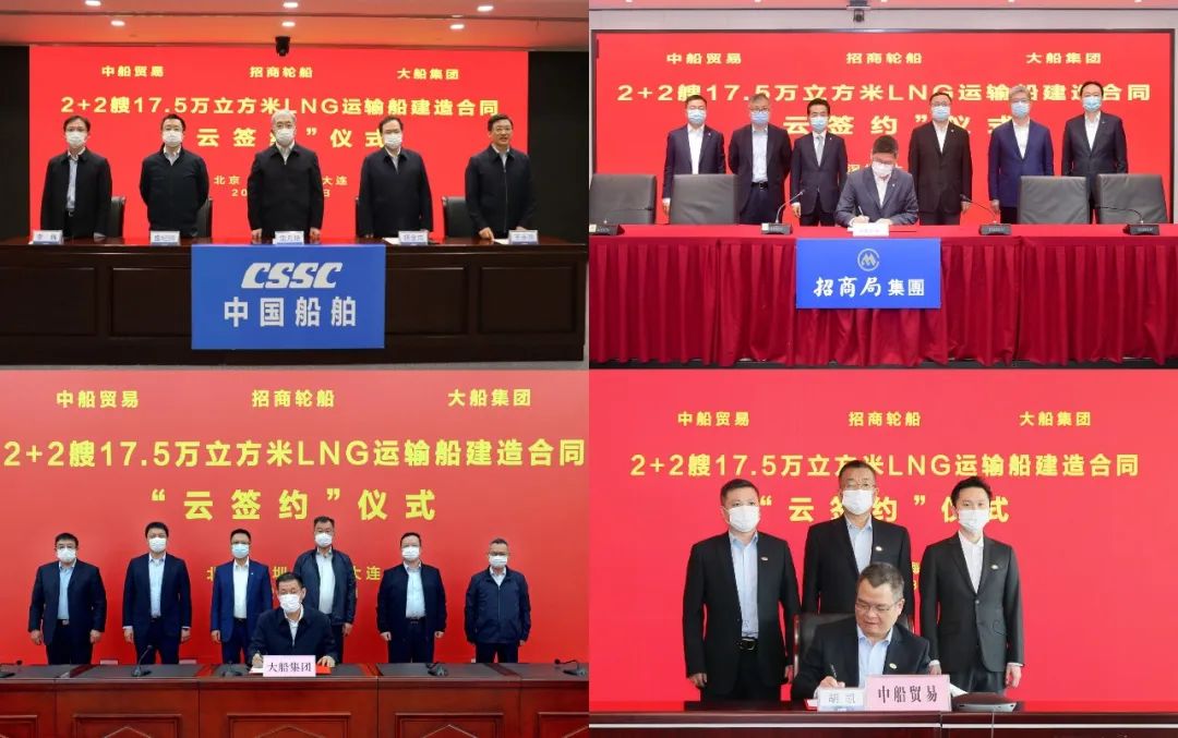 3月31日,中國船舶集團有限公司旗下大船集團聯(lián)合中船貿易與招商局集團有限公司旗下招商輪船在上海、深圳、大連及北京四地以“云簽約”方式簽署2+2艘17.5萬立方米大型液化天然氣(LNG)運輸船建造合同。中國船舶集團黨組書記、董事長雷凡培,黨組副書記、總經理楊金成,黨組成員、副總經理盛紀綱,招商局集團董事長繆建民、總經理胡建華、董事王宏出席簽約儀式。雷凡培、繆建民在儀式上致辭。