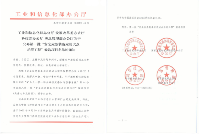 近日,工業(yè)和信息化部辦公廳、發(fā)展和改革委員會(huì)辦公廳、科學(xué)技術(shù)部辦公廳、應(yīng)急管理部辦公廳聯(lián)合公布首批“安全應(yīng)急裝備應(yīng)用試點(diǎn)示范工程”候選項(xiàng)目。