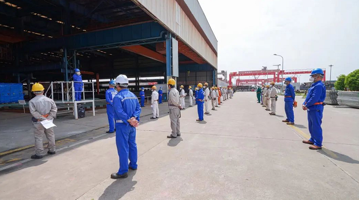 為了確保復工復產(chǎn)穩(wěn)妥有序,滬東中華嚴格按照崇明區(qū)政府“防控體系要到位”“全程閉環(huán)要到位”“分區(qū)管控要到位”“健康管理要到位”“環(huán)境消殺要到位”“防疫保障要到位”“應急預案要到位”“獎懲處罰要到位”的“八個到位”要求,成立了疫情防控、復工復產(chǎn)、安全保障、生活保障等四個工作專班,全面實施監(jiān)督區(qū)域網(wǎng)格化管理,全力保障疫情防控和復工復產(chǎn)工作。同時,對員工進行上崗前的防疫教育、安全教育,進一步增強全員自我疫情防護和安全責任意識,提升安全健康防范能力,確保一方平安。
