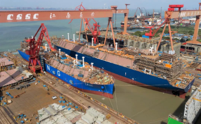 去年11月23日,滬東中華首次實(shí)現(xiàn)兩艘LNG整船同時(shí)出塢的壯舉,此次再度呈現(xiàn),有望成為LNG船建造流程中的常規(guī)場景,以持續(xù)提升建造速度和效率,滿足市場之需。