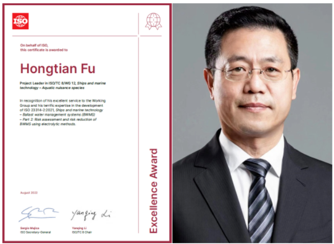 ISO卓越貢獻(xiàn)獎旨在表彰在上一年度ISO國際標(biāo)準(zhǔn)制修訂工作中作出突出貢獻(xiàn)的專家、項目負(fù)責(zé)人或工作組召集人。此次頒獎表彰了付洪田在ISO 23314-2:2021《船舶與海洋技術(shù)—壓載水管理系統(tǒng)—電解法壓載水管理系統(tǒng)的風(fēng)險評估與風(fēng)險降低》國際標(biāo)準(zhǔn)研制作出的貢獻(xiàn)。