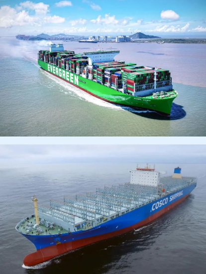 該船總長399.99米,型寬61.5米,型深33.2米,甲板面積相當于近4個標準足球場,最大堆箱層數可達25層,相當于22層樓的高度,可承載24萬多噸貨物,一次可裝載創(chuàng)紀錄的24116只標準集裝箱,是目前全球裝箱量最大的集裝箱船。