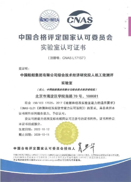 近日,中國船舶集團(tuán)旗下中船綜合院人機(jī)工效測評實驗室(以下簡稱“實驗室”)獲得中國合格評定國家認(rèn)可委員會(CNAS)實驗室認(rèn)可證書,成為國內(nèi)首家具備國家認(rèn)可人機(jī)工效測評能力的試驗機(jī)構(gòu)。