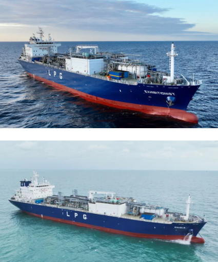 該型船總長159.9米,型寬 25.6米,型深16.5米;船體內(nèi)布置三個設(shè)計溫度為-104℃的C型雙耳罐;入級英國勞氏船級社,由TGE提供液貨系統(tǒng),屬于江南造船“Camel 22E”精品船型。“Camel 22E”是江南造船知名品牌“Lusitano”系列的優(yōu)化升級版船型,相較于原船型,“Camel 22E”減少了一個液罐但增加了1000立方米的貨物艙容,且在設(shè)計航速不變的情況下,油耗大幅降低。