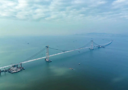 其中伶仃洋大橋?yàn)橹骺?666米的雙塔三跨懸索橋,是深中通道關(guān)鍵控制性工程,建成后將成為世界最高海中大橋、世界最大跨徑海上鋼箱梁懸索橋。