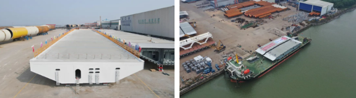 針對(duì)發(fā)運(yùn)過程,武昌造船科學(xué)編制裝船運(yùn)輸方案,自2023年1月7日伶仃洋大橋邊跨第一片鋼箱梁順利吊裝,到4月20日完成最后一片鋼箱梁吊裝,在104天的時(shí)間內(nèi),項(xiàng)目部圓滿完成了伶仃洋大橋全橋107個(gè)節(jié)段發(fā)運(yùn)工作和現(xiàn)場(chǎng)配合吊裝工作,有力保證了伶仃洋大橋連續(xù)吊裝施工。