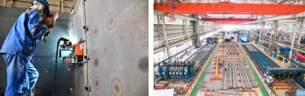 以U肋雙面全熔透焊接技術(shù)和先進(jìn)視覺識(shí)別焊接機(jī)器人技術(shù)為基礎(chǔ),全新規(guī)劃了國(guó)內(nèi)建設(shè)規(guī)模最大、建設(shè)標(biāo)準(zhǔn)最高、配套最完善的橋梁板單元智能制造車間,解決鋼橋正交異性鋼橋面板結(jié)構(gòu)疲勞病害等技術(shù)難題。