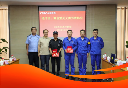9月19日,江陰市見(jiàn)義勇為基金會(huì)專(zhuān)程來(lái)到中國(guó)船舶集團(tuán)旗下中船澄西,對(duì)生產(chǎn)管理部眭才俊進(jìn)行表彰。