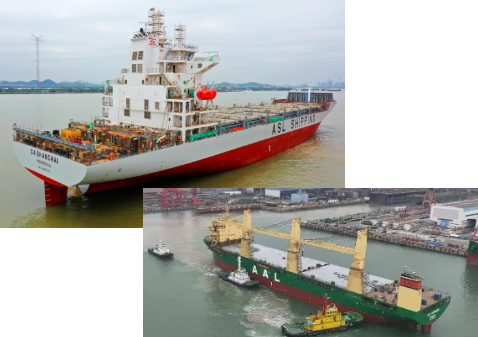 黃埔文沖同日完成2艘船舶出塢節(jié)點(diǎn),包括為亞海航運(yùn)批量建造的1600TEU系列支線箱船首制船、為AAL SHIPPING公司批量建造的32000DWT重吊船2號(hào)船,均為近年來黃埔文沖根據(jù)市場需求優(yōu)化的產(chǎn)品。