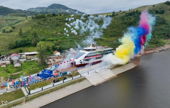 “天河一號”在東北地區(qū)內(nèi)河游覽船領(lǐng)域創(chuàng)下了多個“之最”:投資金額最大、噸位最大、載客人數(shù)最多、推進(jìn)功率最高、服務(wù)功能最齊全。作為吉林省首艘混合動力綠色新能源船舶,同時也是首艘超過500客位的大型游覽船,“天河一號”的亮相為松花江增添了一道亮麗的風(fēng)景線。