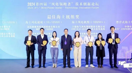 開年即“開跑”,展示新“風(fēng)貌”。1月9日, 2024(第四屆)“風(fēng)電領(lǐng)跑者”技術(shù)創(chuàng)新論壇暨頒獎盛典在北京成功舉行,活動共評選出“風(fēng)電領(lǐng)跑者”最佳陸上機組獎、最佳海上機組獎、最佳零部件產(chǎn)品獎、最佳服務(wù)產(chǎn)品獎和年度最佳創(chuàng)新獎五類大獎,中國船舶集團旗下中船科技子公司中船海裝H305-25MW海上風(fēng)電機組、H220-6.XMW陸上風(fēng)電機組憑借其創(chuàng)新設(shè)計和優(yōu)異性能分別斬獲了“最佳海上機組獎”和“最佳陸上機組獎”。