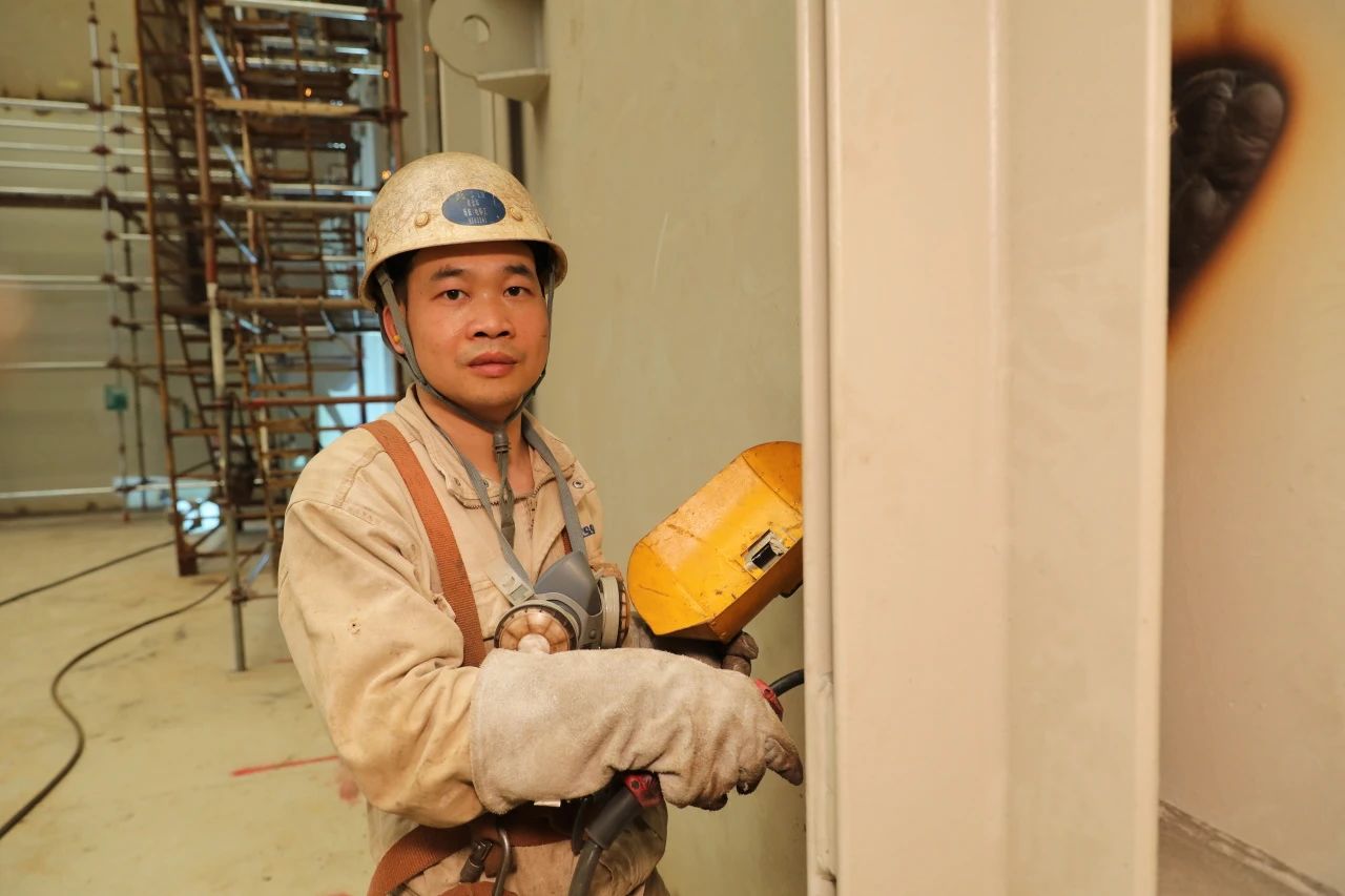 為了更好地掌握超厚板的焊接,搭載一部支持大合攏一班的梁金華和同事們一起進(jìn)行了專門的焊接培訓(xùn)。有趣的是,老師謝祖靠、學(xué)生梁金華,都是來自該所技校的畢業(yè)生。既是師兄弟、又是師徒,這在黃埔文沖的工人隊伍當(dāng)中并不少見。