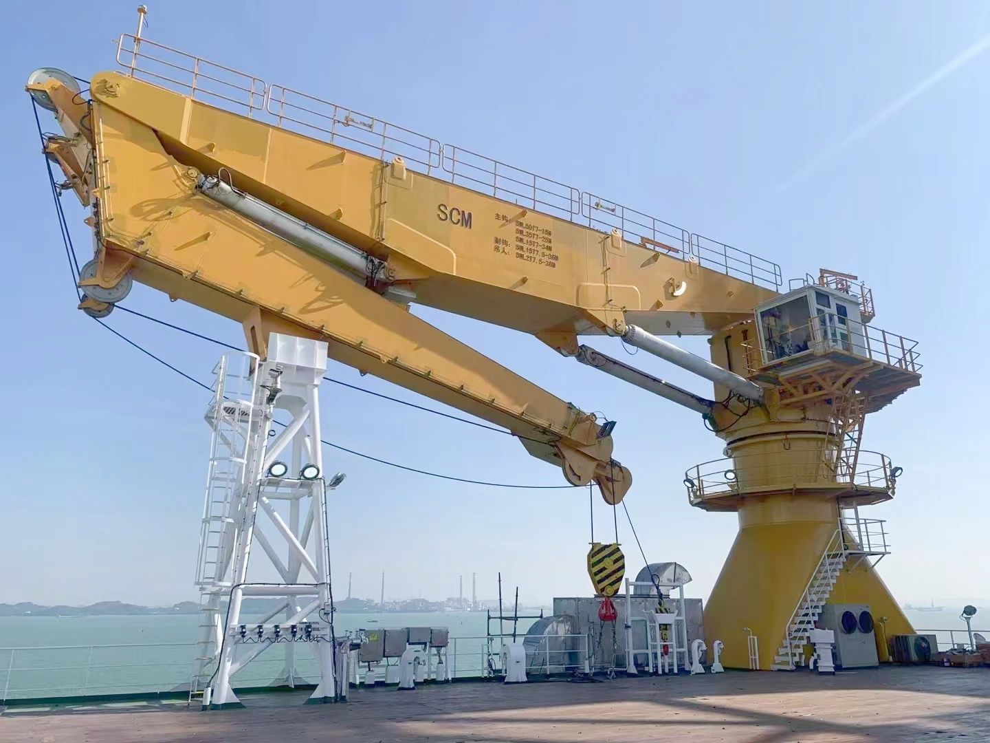 該起重機(jī)相較于傳統(tǒng)海工起重機(jī)大有不同,它對(duì)標(biāo)國(guó)際一流海工起重裝備,有更為嚴(yán)格的行業(yè)標(biāo)準(zhǔn)及規(guī)范,更多元的功能需求。該起重機(jī)在現(xiàn)有的海工吊基礎(chǔ)上增加了主動(dòng)安全防護(hù)(AOPS)、智能化安全防護(hù)、油缸泄漏檢測(cè)等多種功能,這些功能均是華南船機(jī)首次嘗試設(shè)計(jì),其創(chuàng)新性與難度不言而喻。