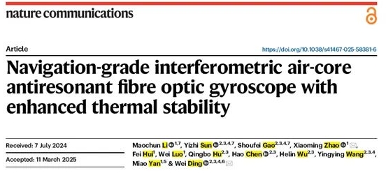 4月14日,中船集團(tuán)旗下七〇七所和暨南大學(xué)等構(gòu)建的深度合作研究團(tuán)隊(duì),在國際權(quán)威頂級(jí)期刊《Nature?Communications》發(fā)表了題為“Navigation-grade interferometric air-core anti-resonant fibre optic gyroscope with enhanced thermal stability”的最新研究成果,實(shí)現(xiàn)了空芯光纖陀螺領(lǐng)域的新突破。