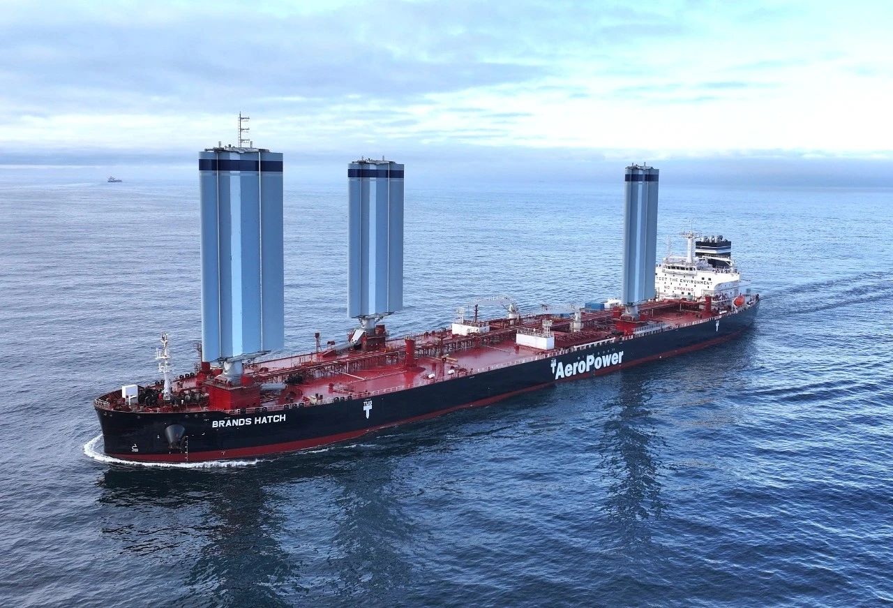 風(fēng)能作為一種可再生能源,以其高性價(jià)比成為業(yè)內(nèi)研究船舶推力的新方向。“BRANDSHATCH”號以將傳統(tǒng)風(fēng)能轉(zhuǎn)化為智能化現(xiàn)代推進(jìn)力為核心技術(shù)顛覆點(diǎn),配備三具高度超過40米的硬質(zhì)翼型風(fēng)帆,在航行中能夠依托數(shù)字控帆系統(tǒng)根據(jù)氣象數(shù)據(jù)實(shí)現(xiàn)實(shí)時(shí)智能動態(tài)調(diào)整帆角,通過機(jī)械液壓傳動系統(tǒng)實(shí)現(xiàn)升降、開合和旋轉(zhuǎn),為船舶提供額外推力,從而大幅減少主機(jī)的燃油消耗,有效提升船舶運(yùn)營效能。