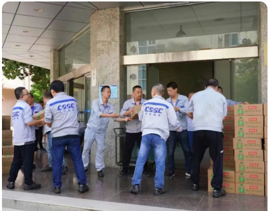 為應(yīng)對持續(xù)高溫天氣,中船物資全面部署防暑降溫工作,切實保障一線員工健康安全。下屬各子公司嚴(yán)格落實安全生產(chǎn)責(zé)任,組織專項安全檢查,強(qiáng)化作業(yè)現(xiàn)場安全管理;結(jié)合不同崗位作業(yè)強(qiáng)度,科學(xué)制定防暑降溫方案,并通過安全教育提升員工應(yīng)急處置能力。同時,積極開展“關(guān)愛員工送清涼”慰問活動,為一線員工發(fā)放藿香正氣水、清涼飲料等防暑物資,并升級改造員工休息室,改善高溫作業(yè)環(huán)境。