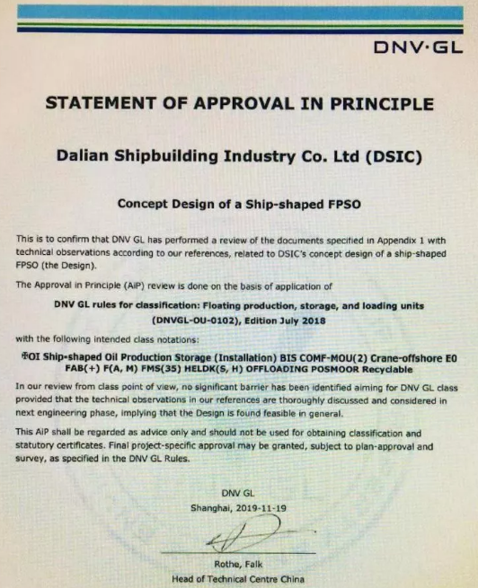 ????11月20日,大船集團(tuán)在總部舉行了“15.5萬(wàn)噸穿梭油船”和“通用型FPSO”設(shè)計(jì)AIP證書(shū)頒發(fā)儀式,兩型新產(chǎn)品獲得DNV·GL原則性認(rèn)可。