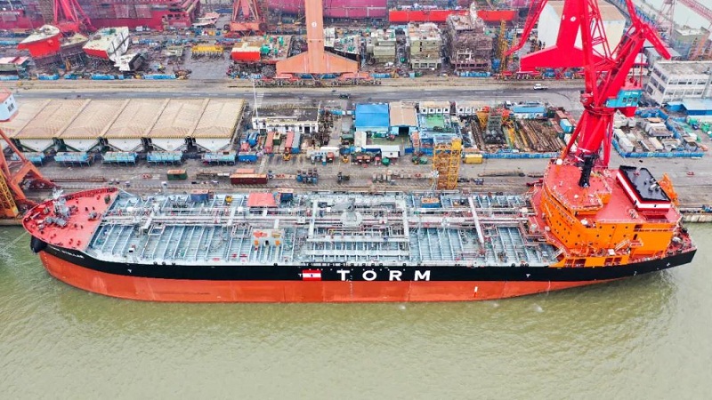 ????廣船國(guó)際為T(mén)ORM航運(yùn)公司建造的7艘5萬(wàn)噸化學(xué)品/成品油船中最后一艘船提前2天完成試航歸來(lái)。該型船加裝開(kāi)式除硫系統(tǒng),是環(huán)保、節(jié)能、高效的新型油船,試航的完成,為搶抓完工節(jié)點(diǎn)贏得了寶貴時(shí)間,系列船全部交付指日可待!