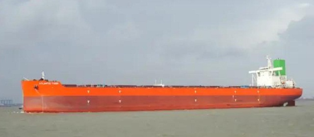 ????4月16日,中國(guó)船舶集團(tuán)旗下外高橋造船為韓國(guó)長(zhǎng)錦商船(SINOKOR)建造的21萬(wàn)噸散貨船 “ATLANTIC TIGER”號(hào)簽字交付。該船是繼上月首制船成功交付后,外高橋造船向該船東交付系列船中的第二艘,再次采用首制船“云交船”的交付模式。