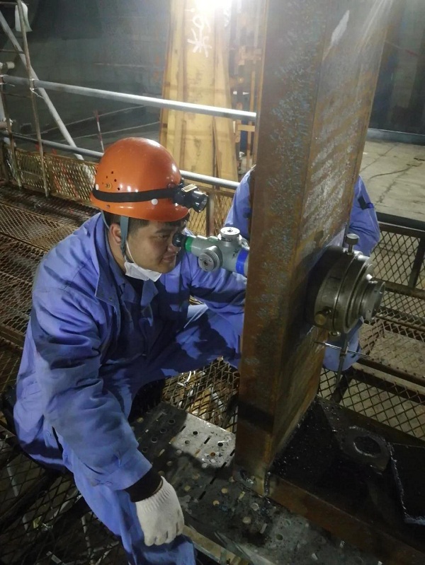 為確保VLCC照光工作順利完成,大船集團(tuán)輪機(jī)工藝小組,提前一周就進(jìn)入“作戰(zhàn)”狀態(tài),他們每天堅(jiān)持深入現(xiàn)場(chǎng),從細(xì)小處入手,檢查每一個(gè)可能影響軸舵系施工質(zhì)量的隱患,加班加點(diǎn)成了工作的常態(tài)。