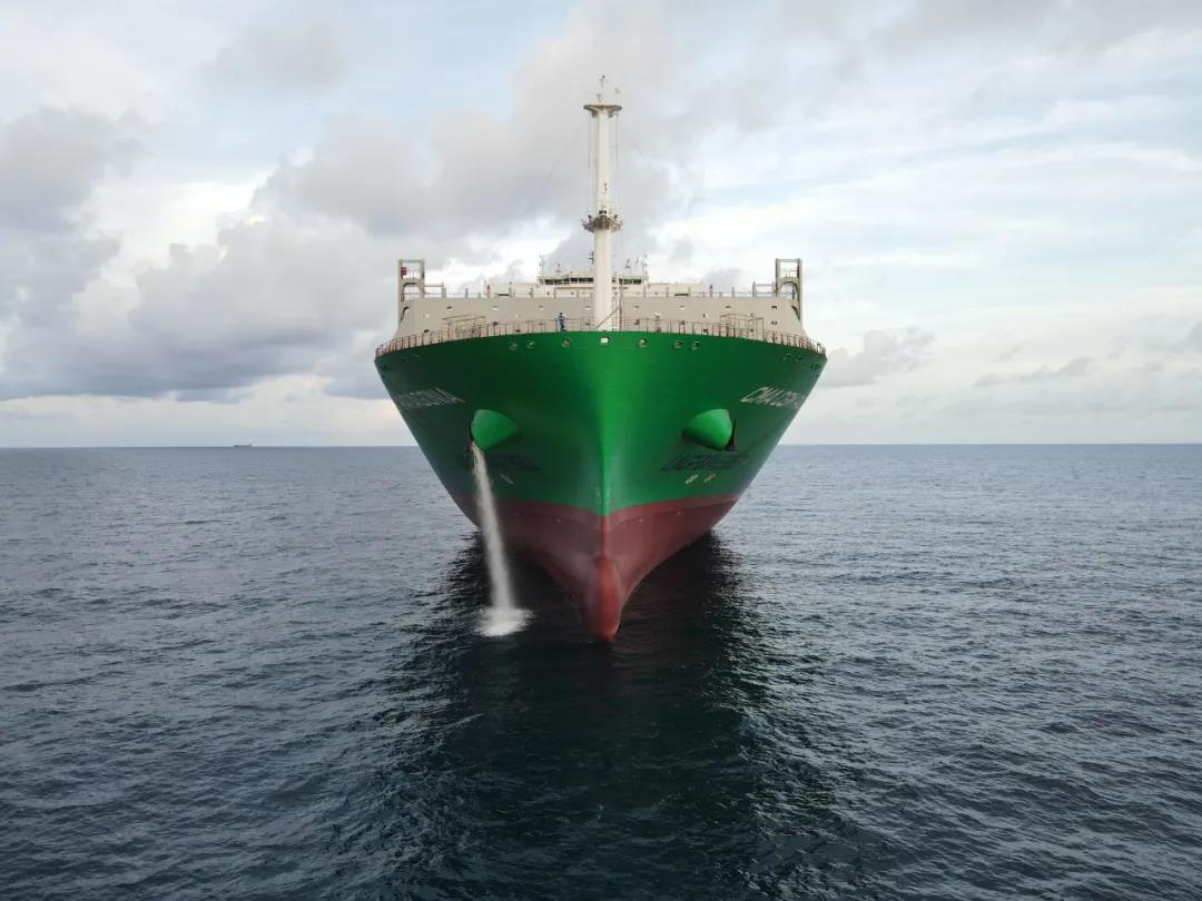 江南造船負(fù)責(zé)建造5艘雙燃料動(dòng)力超大型集裝箱船,該船載箱量達(dá)15254 TEU,可運(yùn)載1800個(gè)冷藏集裝箱。