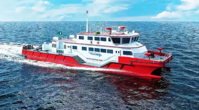 3月18日,中國澳門海關(guān)消防救援船在梧州舉行開工儀式。該項(xiàng)目由中國船舶集團(tuán)廣州公司下屬澳門公司承接,中船廣西下屬桂船公司建造,七〇一所下屬武漢船舶設(shè)計研究院設(shè)計,采用雙體穿浪船型,全鋁合金焊接結(jié)構(gòu)。