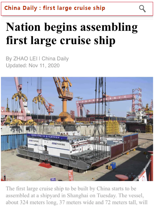 下面一起看看各大媒體“眼中”的國產(chǎn)大型郵輪“長女”。