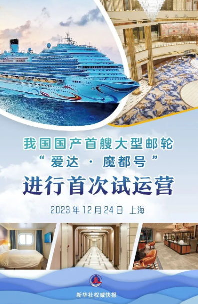 12月24日,國(guó)產(chǎn)首艘大型郵輪“愛達(dá)·魔都號(hào)”在上海吳淞口國(guó)際郵輪港離港出海,進(jìn)行首次試運(yùn)營(yíng)。