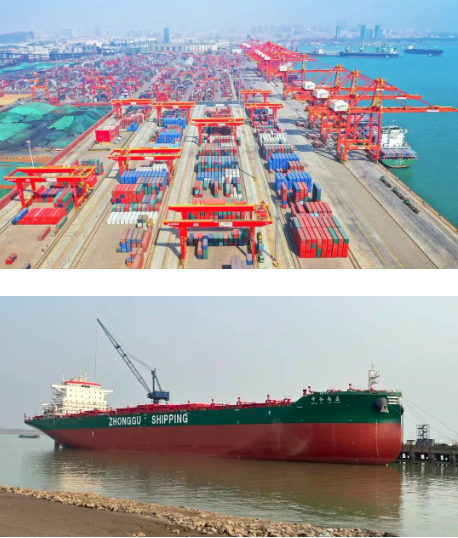 在公開照片中,與習近平總書記“同框”的,正是中國船舶集團旗下武漢船機、七一六所參與建設(shè)的日照港順岸開放式全自動化集裝箱碼頭,以及上船院設(shè)計、汾西重工提供關(guān)鍵配套的4600箱集裝箱船“中谷南昌”號。