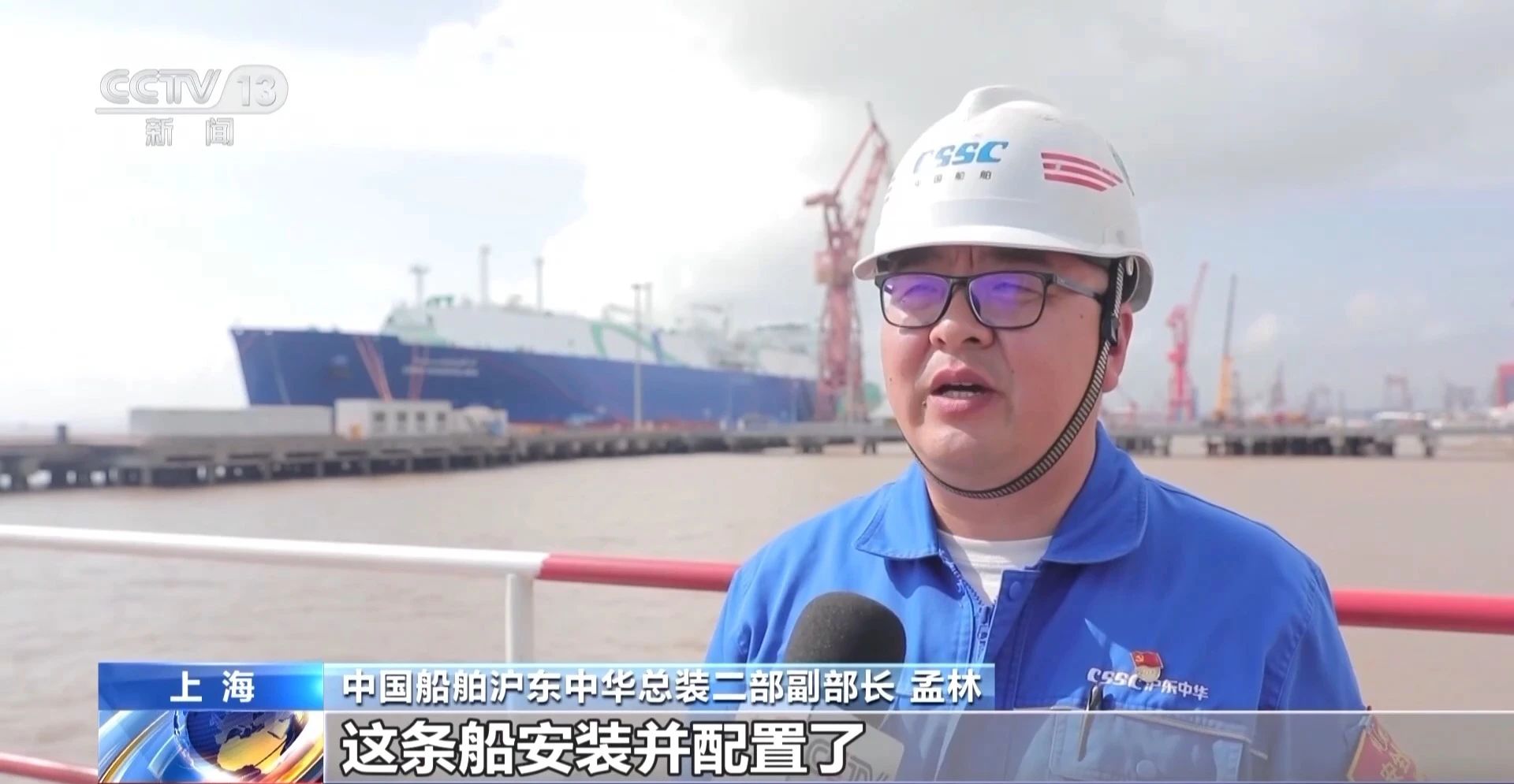 中國船舶滬東中華總裝二部副部長 孟林:這條船安裝并配置了全球首臺(tái)套再液化裝置,國內(nèi)自主研發(fā)的廢氣再循環(huán)系統(tǒng),能夠有效地提高能效,也能夠滿足國際上的T3排放標(biāo)準(zhǔn)。