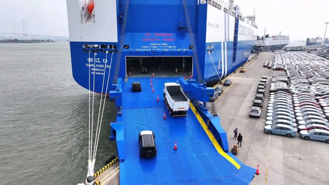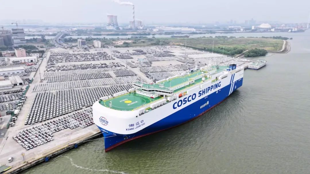 2024年12月14日, LNG雙燃料汽車運(yùn)輸船“湘江口”輪首航靠泊廣州南沙汽車口岸,搭載一汽、吉利、奇瑞、長城、上汽、比亞迪等10余個(gè)國產(chǎn)品牌的近4000臺(tái)各型車輛出口駛往波斯灣市場?!跋娼凇陛喌募尤耄瑢⒏旄玫胤?wù)“一帶一路”經(jīng)貿(mào)往來,為全球汽車海運(yùn)市場注入新的活力。