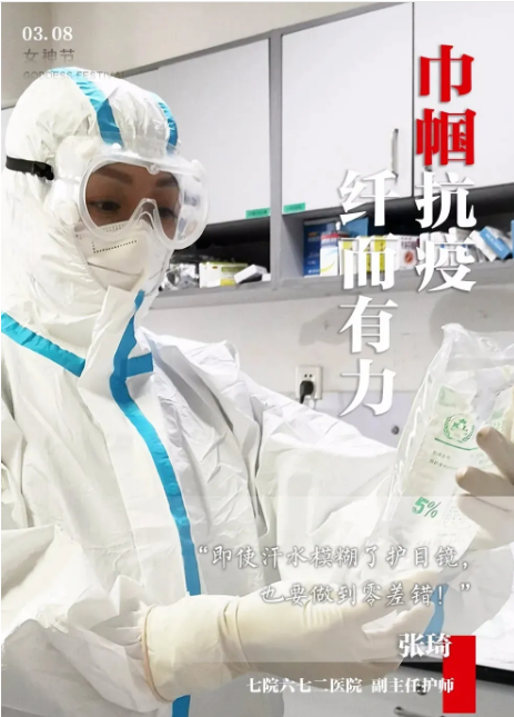 ????張琦,現(xiàn)為六七二醫(yī)院感染三科臨時黨支部黨員,感染三科護士長。她在1月26日,湖北六七二中西醫(yī)結合骨科醫(yī)院被征為“新冠肺炎”定點收治醫(yī)院時,第一時間寫下請戰(zhàn)書上陣一線。雖然骨折尚未痊愈,仍帶領全科護士投入到緊張而又忙碌的病房改造準備工作中,搬運設備、物資,常常加班到深夜,以實際行動展現(xiàn)了醫(yī)者大美和巾幗大愛的高尚品格及別樣風采!